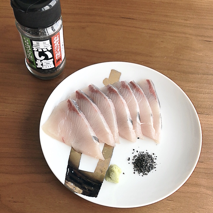 黒い塩で食べると魚の脂っぽさがスッキリ感じられました。