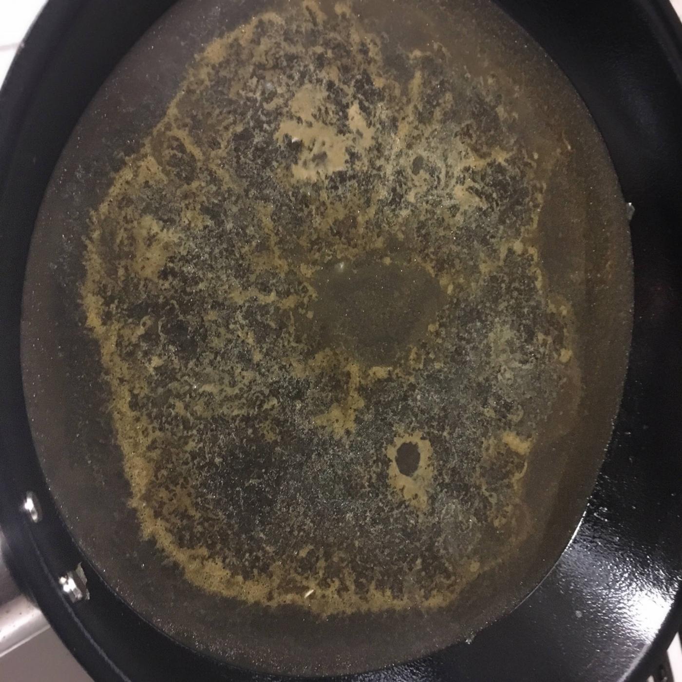 スープをフライパンに入れてみましたが、イカ墨だから本当に真っ黒!