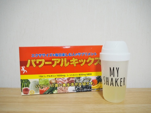 次にシェイカーに粉末1包と水を入れてよく振って飲んでみました。