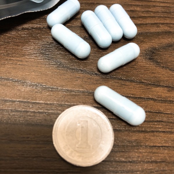 青色のカプセルはなんとなく珍しい気がしますが、サイズ感は一般的。