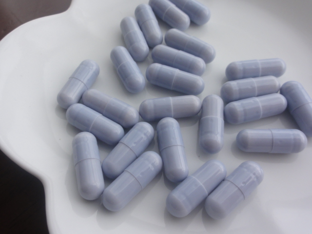 いい水色のカプセル!食品にはない色だ