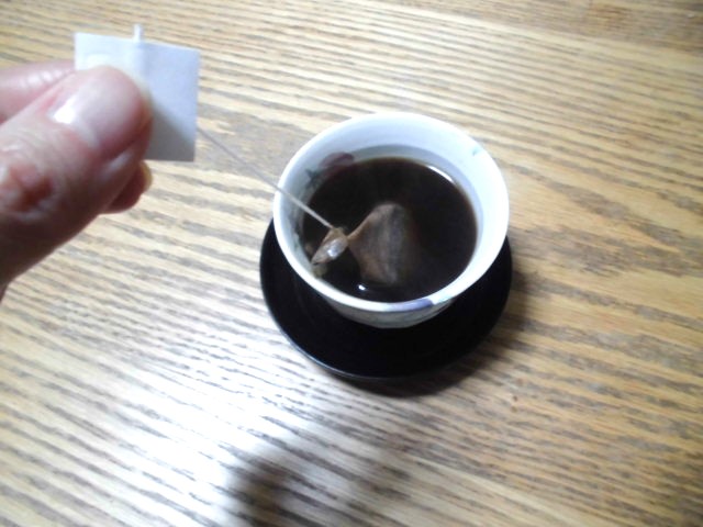 コーヒーのバッグを上下させると色がかなり濃く出て、ほのかに良い香りが漂い始めました。