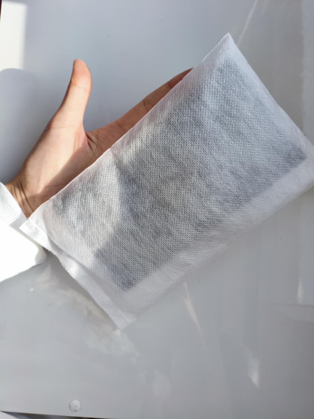 商品自体はとてもシンプルで、白いメッシュの中に竹炭が入っているようです。