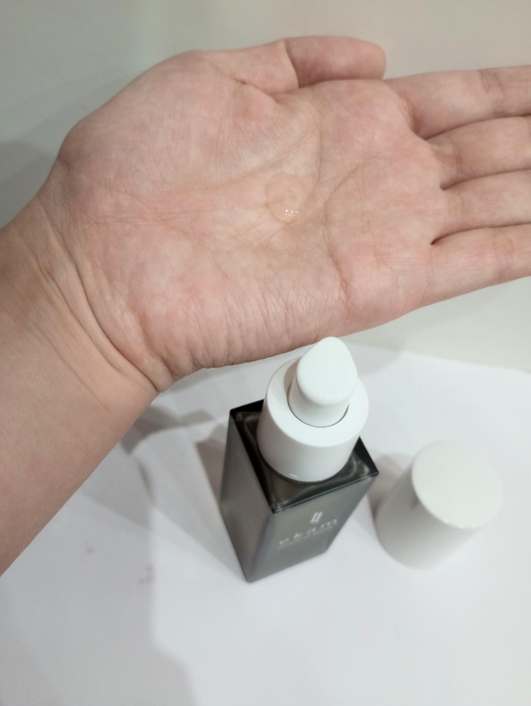 手に出したときはぷるんとした濃密なジェルのような美容液のようなテクスチャーなのですが、伸ばすと嫌な重さはなく男性でも使いやすいです。