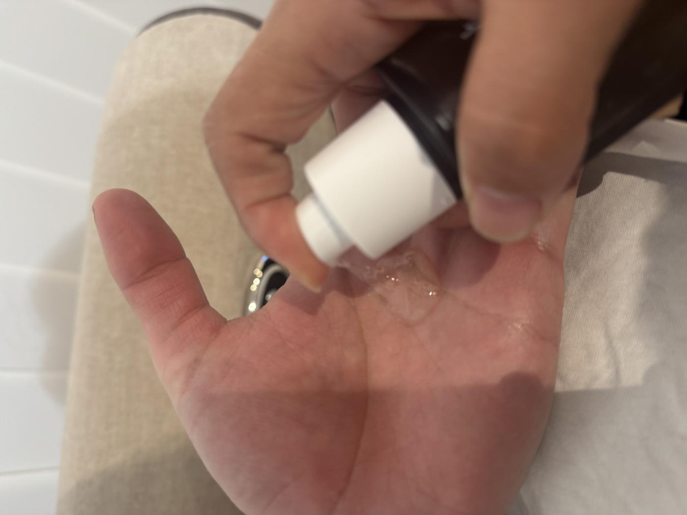 テクスチャーはとろみがありつつも重すぎず、肌にスッと馴染む感じ。ベタつきが残らないので、スキンケアが苦手な男性でも使いやすいのがいいなと思いました。実際に旦那も「これなら続けられる」と言っていました◎