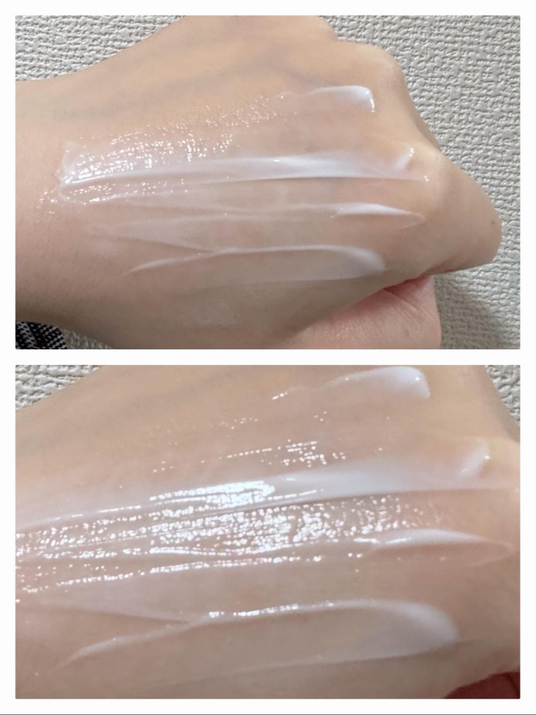 テクスチャーは軽いのに、肌の上でスッととけていく感じが異様に良い。少量でも手のひらから指先まで、均一にピタッと薄膜が張られるような感覚で、でもベタつかないのが本当に不思議!