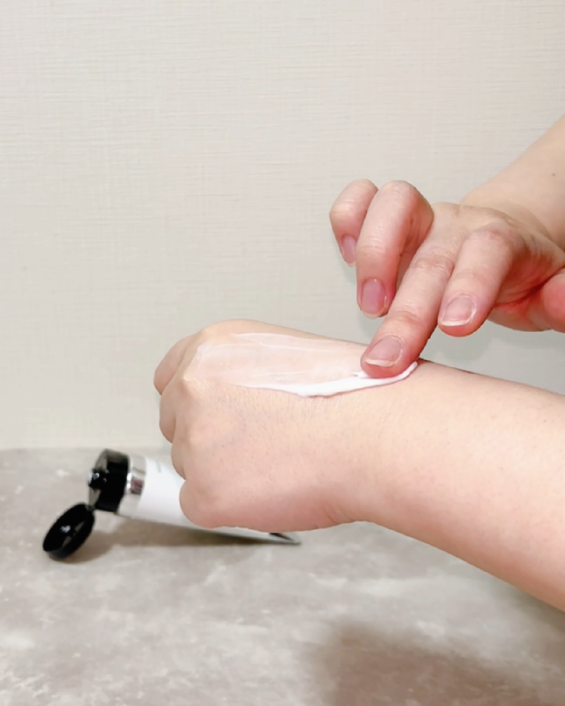 手肌にしっとりとした潤いを与え、保湿・保水のための保護膜が形成されるとさらっとした手触りに変化するんです。