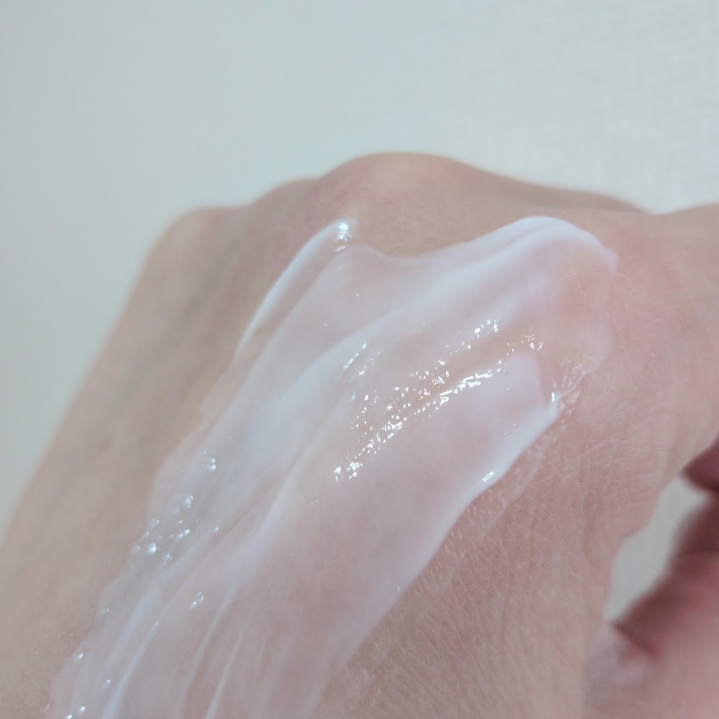 公式の情報では「さらっと軽やかな手触りに変化する」とされていますが、個人的な感想としては、馴染むまで数分ほどしっとりとした感覚が続くように思いました。この独特の質感が、肌を保護してくれる「ヴェール(シールド)」を形成している印なのかもしれませんね。膜が張ったような感覚があり、じっくり時間をかけて肌を包み込んでくれるような使い心地です。
