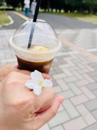 昨日のお花見で牛乳アイス乗せアイスコーヒーを買いまして、こんなこともしてみました。