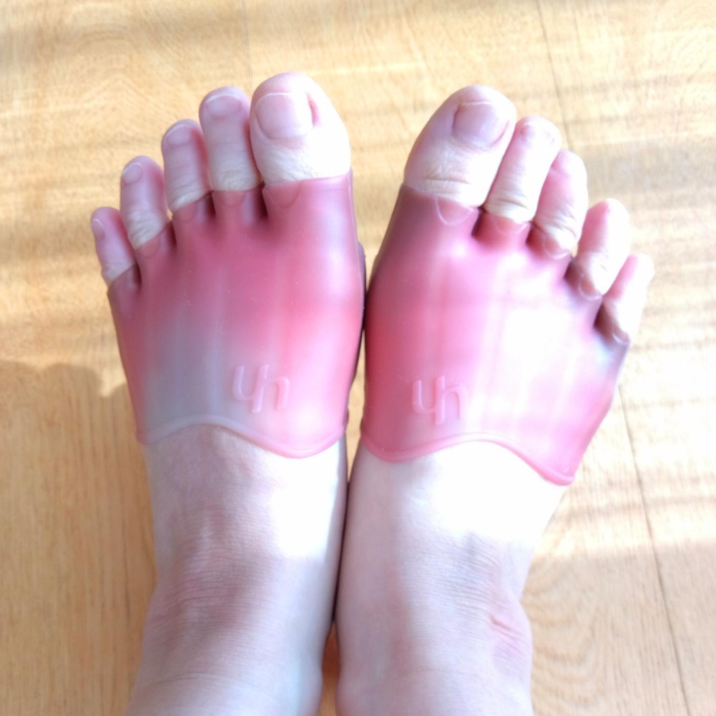 履いてしばらく、指をグーにしたり開いてみたり、ストレッチをしてみても色が変化せず。