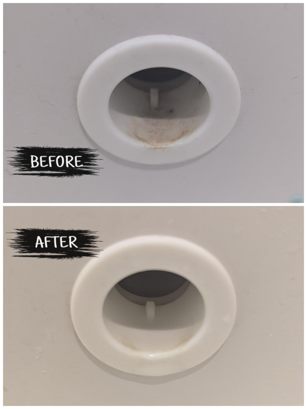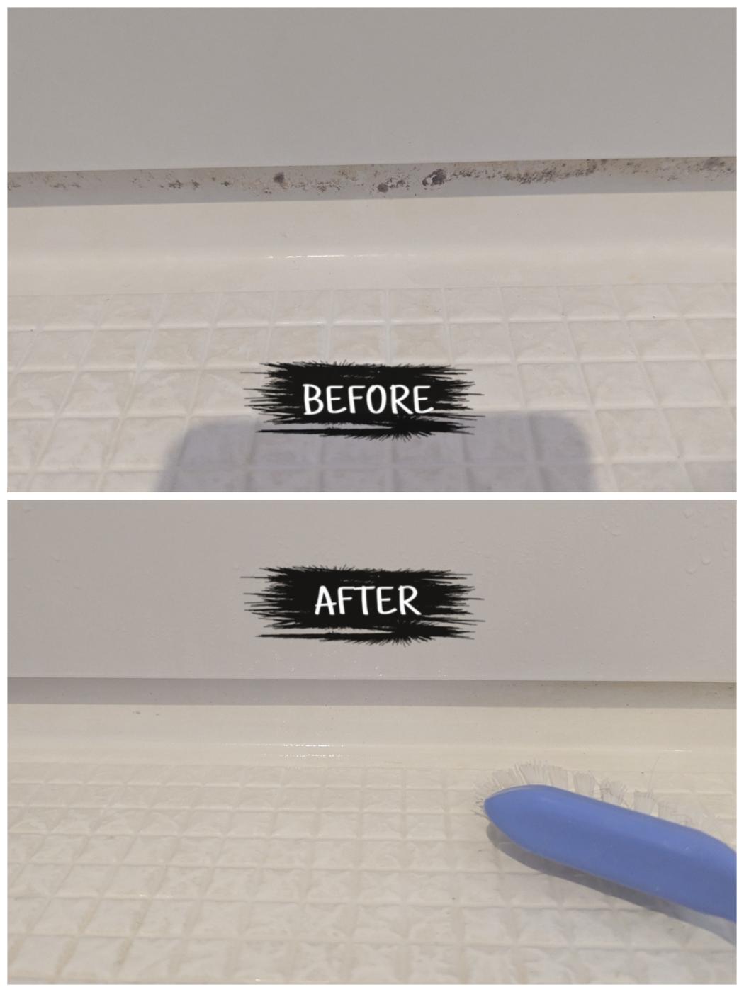 少し時間を置いてブラシなどでこすってからしっかり水で流すと、気になていた黒っぽかったり茶色っぽかったりするカビからくる汚れがきれいになりました。