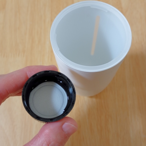 水を入れた加湿器のタンクにキャップ1杯の除菌ウォーターを入れます。