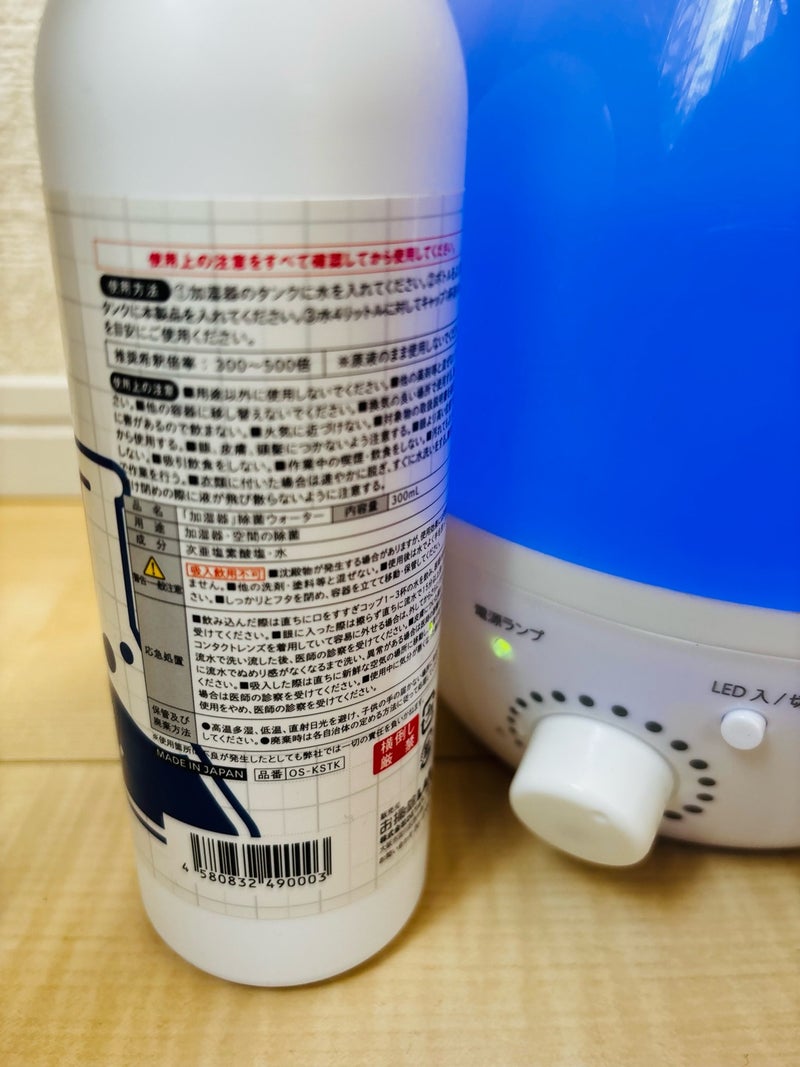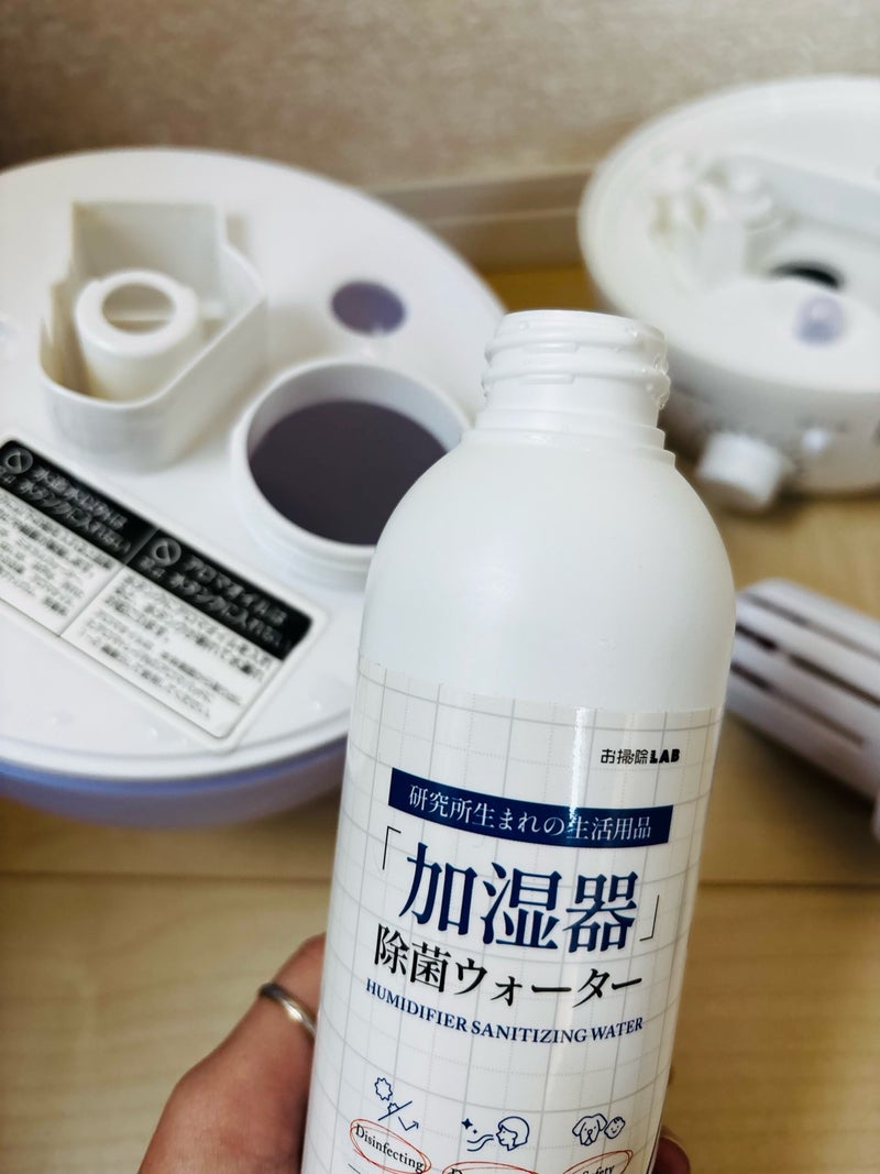 『加湿器』除菌ウォーターは、キャップ1杯の本剤をタンクに入れることで、加湿しながら加湿器のタンク内の汚れを綺麗にしてくれるというものです◎◎◎