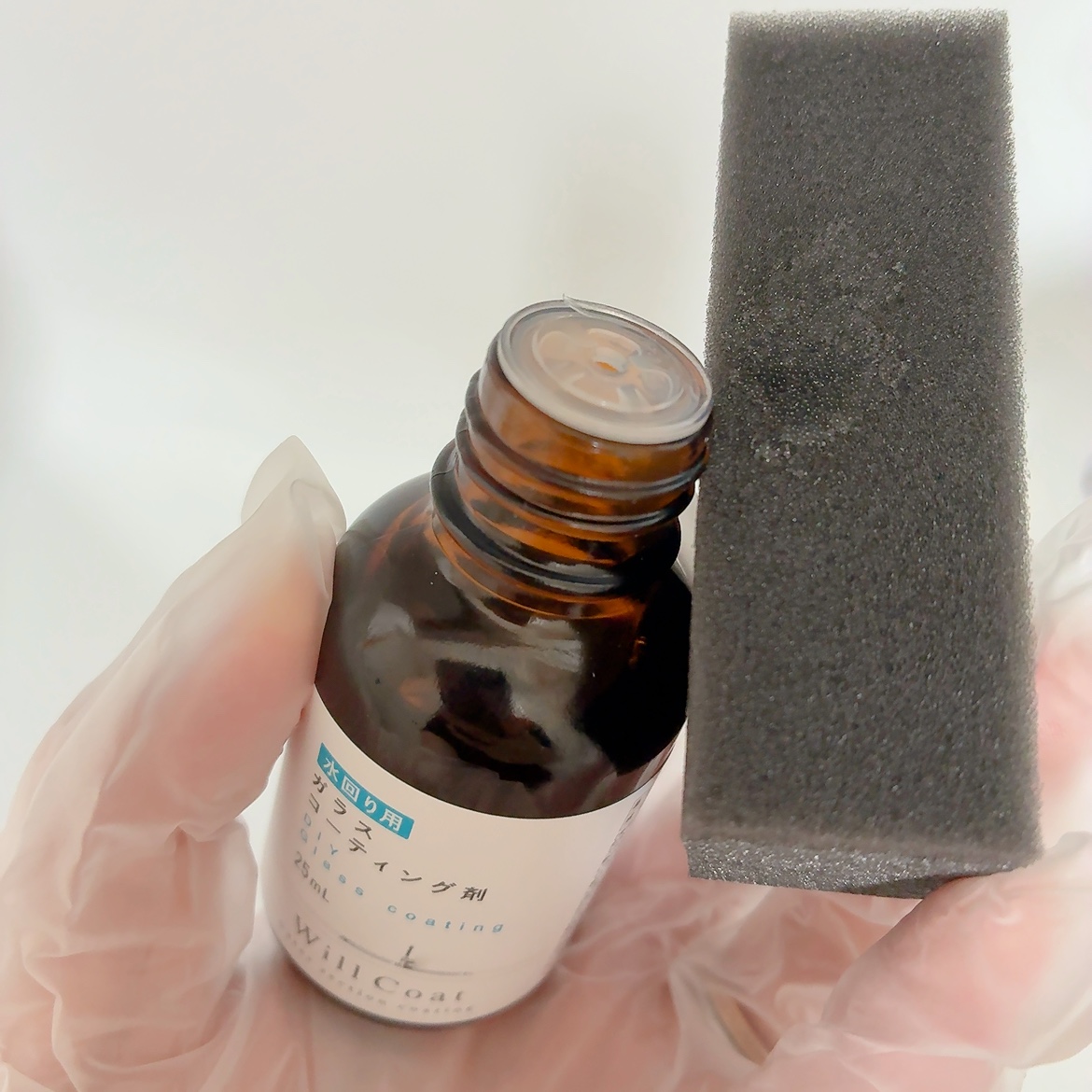 常温で硬化するガラスコーティング剤だそうで、熱やブロワー等を乾燥時に使用する必要がないのも魅力的♪