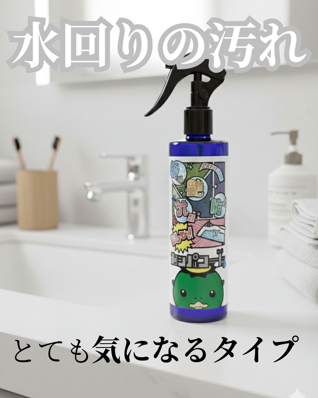 私は特に洗面所がすぐに汚れで曇ってしまって悩んでいたので、洗面台に使いました。 カッパのイラス...