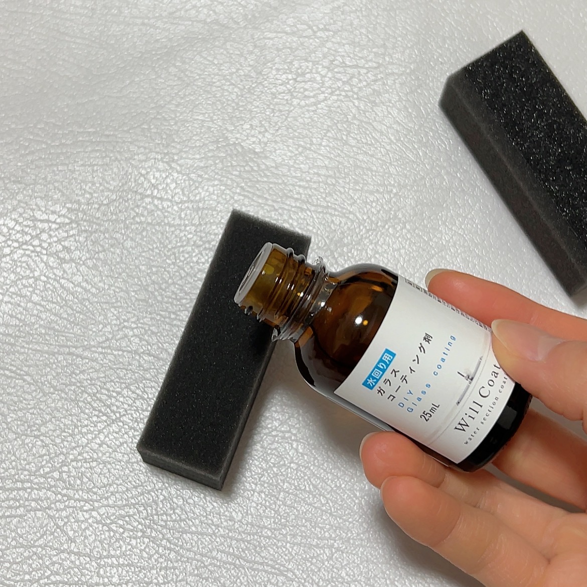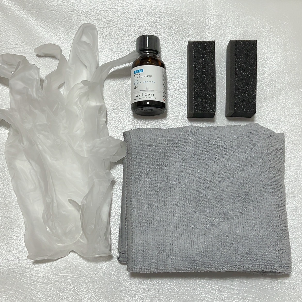 プロ仕様のコーティング剤なのにDIYで使えるタイプで、必要な道具が一式そろっているから特別な準備いらずでスタートできるのがすごく良かった◎