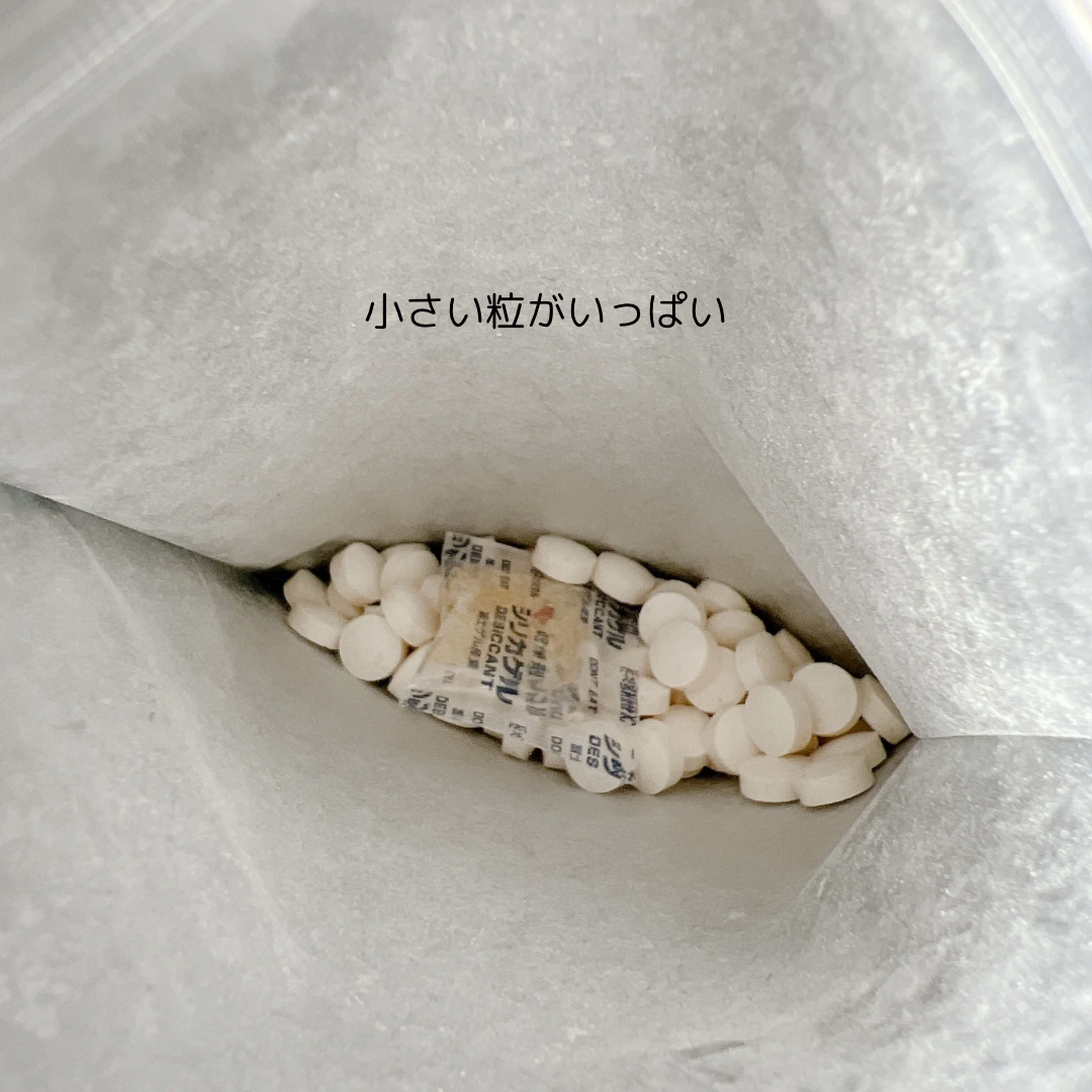 まずは水と一緒に飲んでみようと思い4粒口に入れてみると、ほんのり柑橘系の味を感じました。表面はコーティングされていて、苦味や甘味などを感じることはありませんでした。舐めていてもラムネのように溶けていくことはないです。粒が小さいので4粒でも苦労することなく飲むことができました。