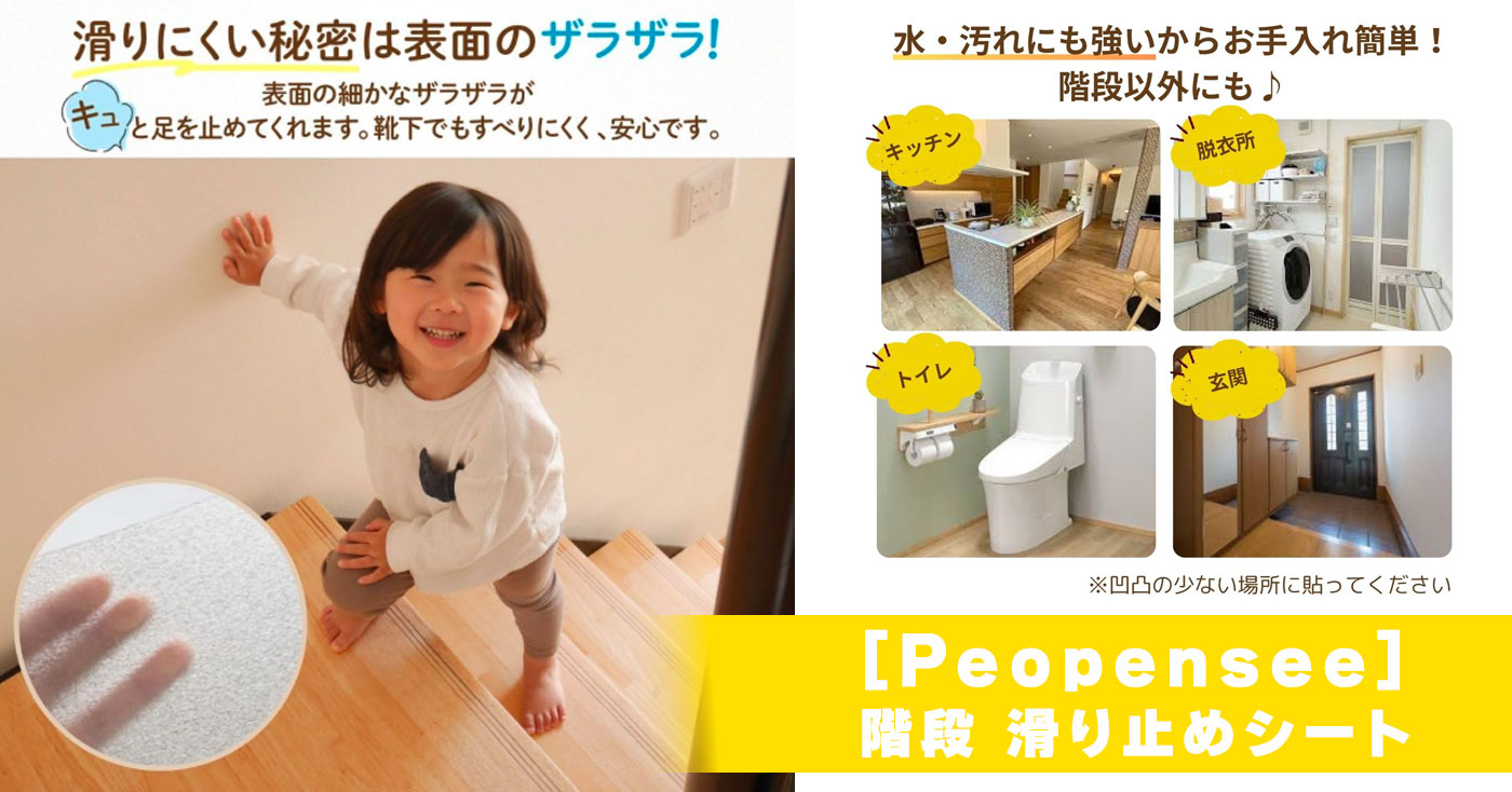 [Peopensee] 階段 滑り止めシート[Peopensee] 階段 滑り止めシートご自宅の階段での転倒、落下防止に!細かなザラザラで足の裏がキュっと止まる! 滑りにくい秘密は表面のザラザラ! 表面の細かなザラザラがキュッと足を止めてくれます。 足裏でとまる感覚があるので、高齢のご両親やお子さまもより安全を意識して階段を上り下り♪ 靴下でもすべりにくく、安心設計 半透明なので、おうちの雰囲気はそのまま♪ 妊娠中のお母さま、小さなお子さま、高齢の方と同居されている方、ペットを飼っている方におすすめです! 水・汚れにも強いからお手入れ簡単! 階段以外にも! 脱衣所、トイレ、キッチン、玄関にもお使いいただけます! ※凹凸の少ない場所に貼ってください。 貼り付けが苦手の方も安心 シートと同じ幅のヘラだから、力が入りやすく、空気が入りにくい! 力が入りやすく、空気が入りにくい!動画マニュアル付★ ※モニター商品は「階段滑り止めシート(透明)45センチ×10センチ」シート3枚入りとなります。5.00 / 1件のレビュー この商品の購入はコチラ