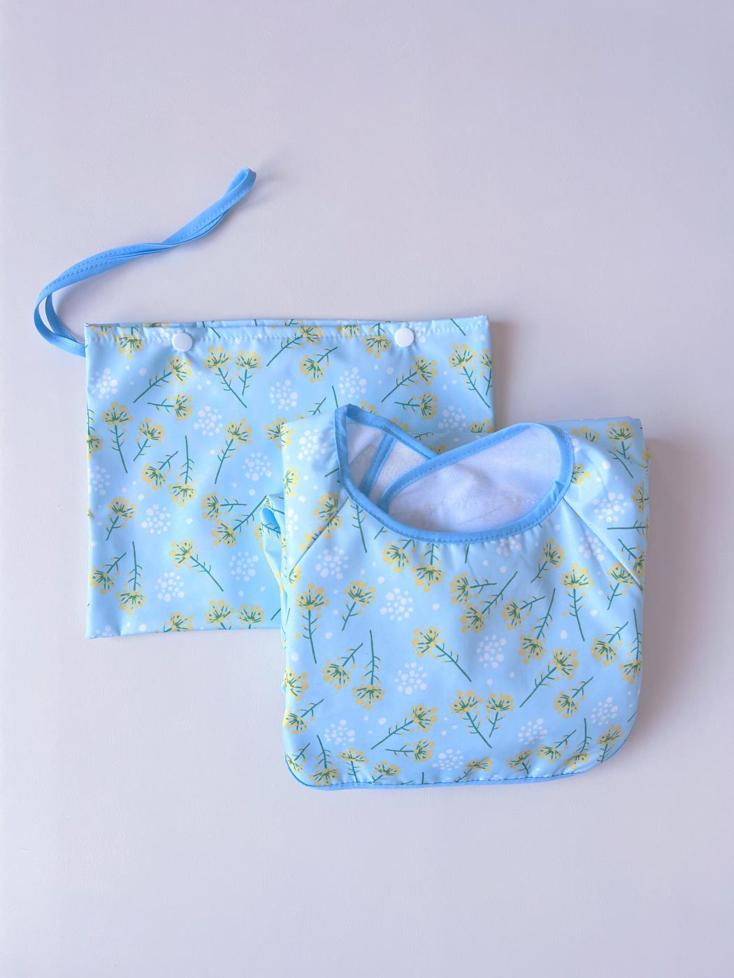 食べこぼしをキャッチしてお掃除が楽になる、テーブルクロスと一体化した長袖のお食事エプロンです🍽️✨