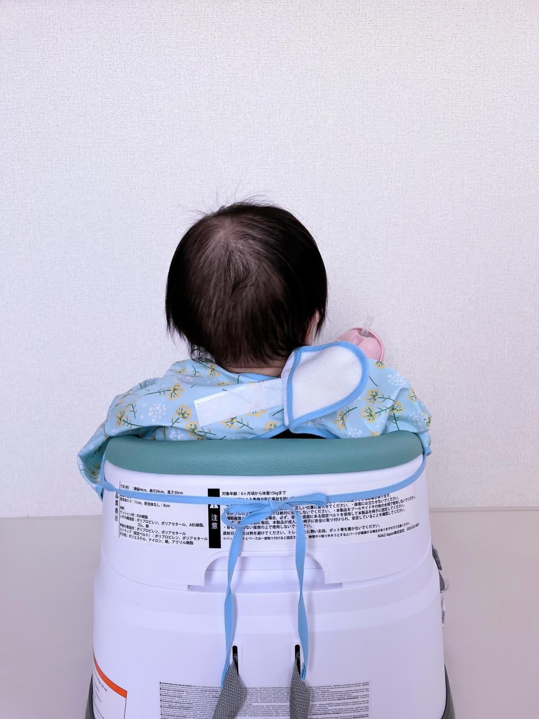 サイズはワンサイズで0〜4歳まで使える物なので、8ヶ月には少し大きいなという印象💭