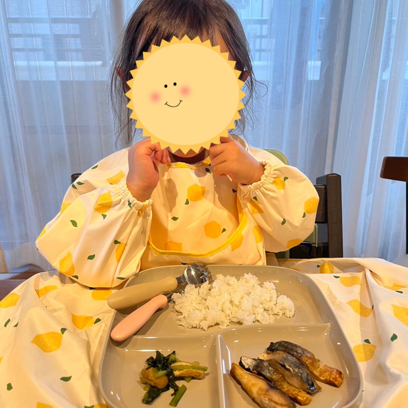 長袖だしどうだろう…と少し心配でしたが、娘も嫌がることなく、むしろニコニコでエプロンを気に入ってくれました💓