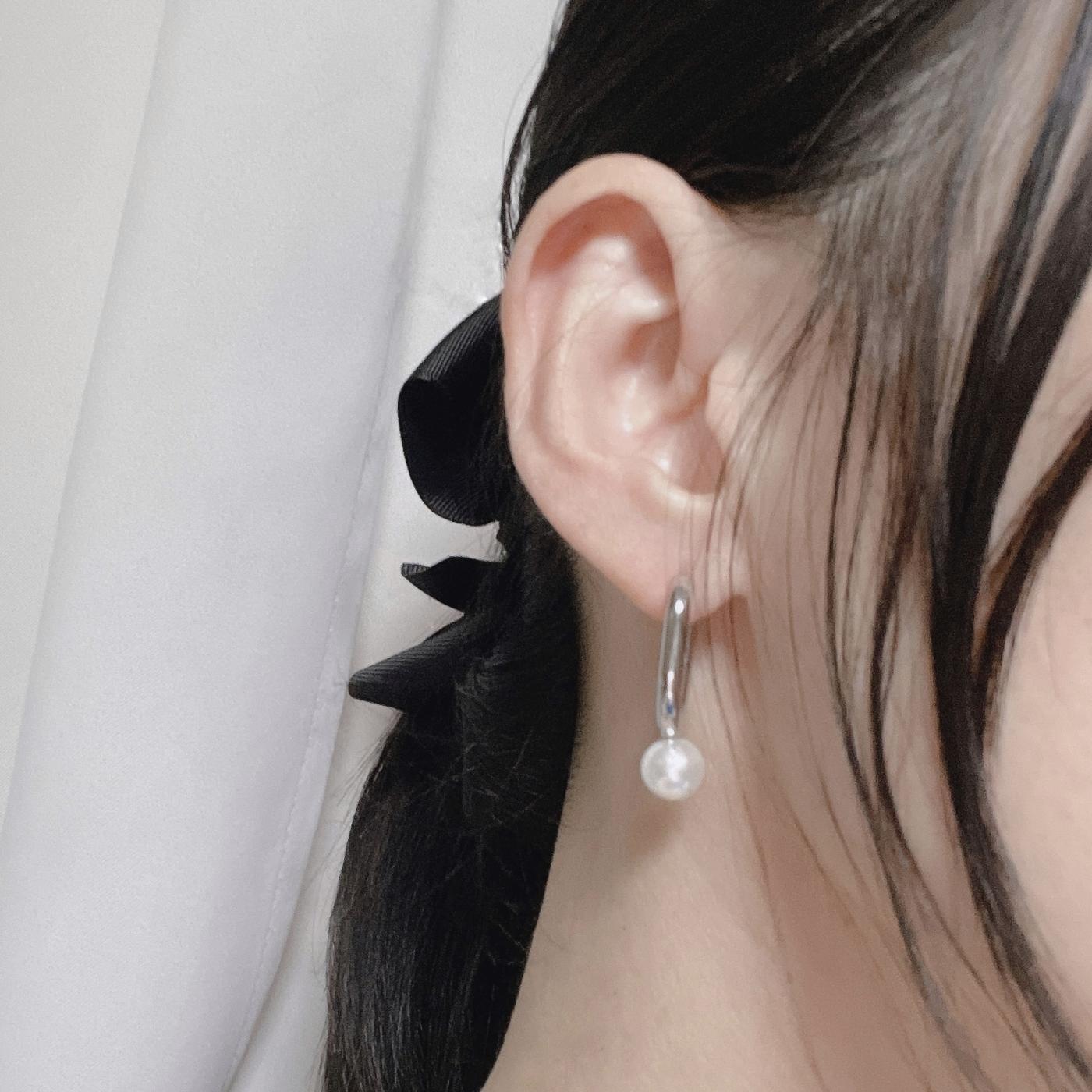 ボディピアスのようなデザインはサージカルステンレス製沢山あるけど、パールがついててエレガントなデザインのピアスは珍しい👀