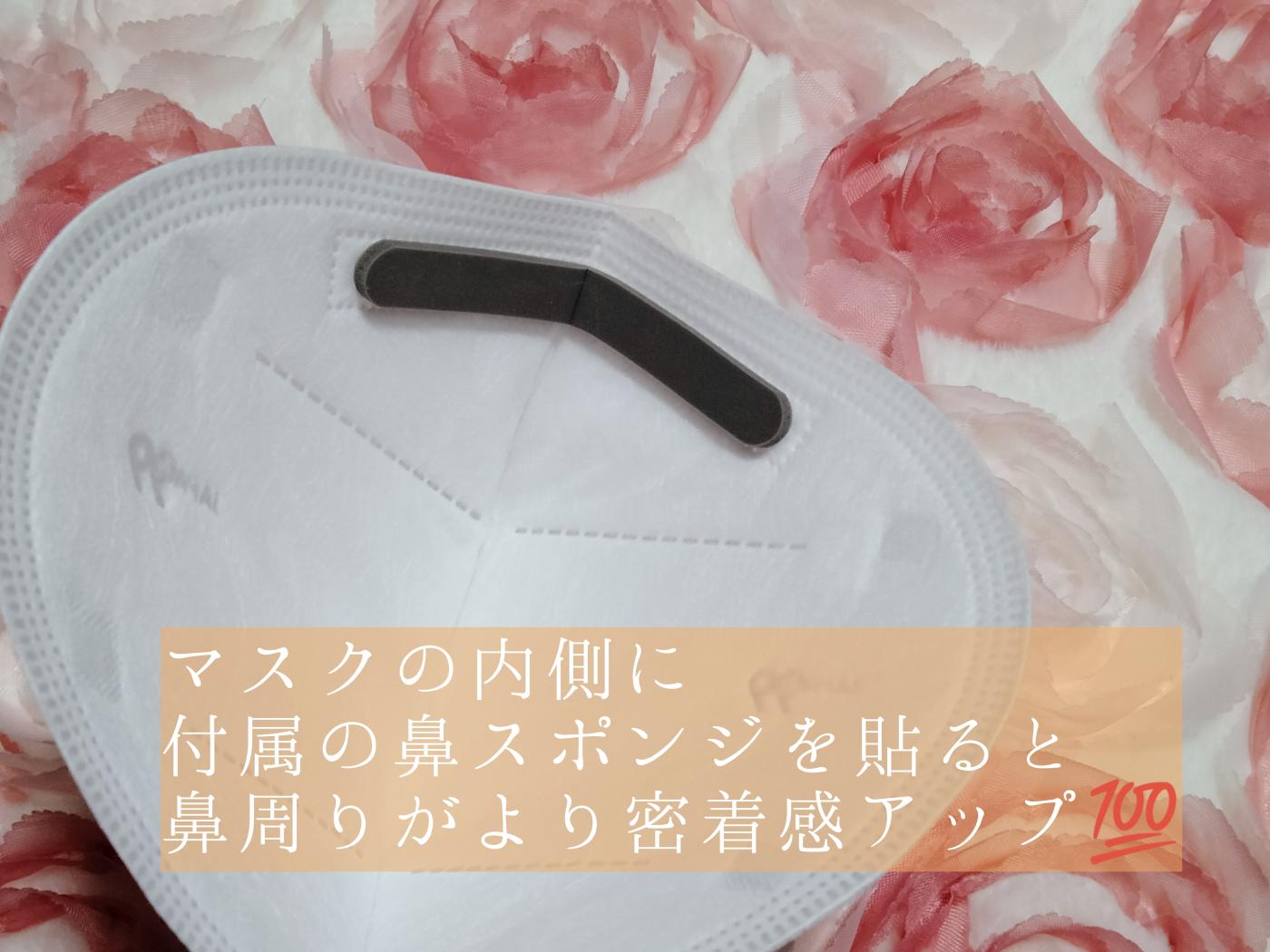 マスクの内側に鼻スポンジを貼り付けると、いつもは隙間が気になる鼻周りもしっかりと密着してくれました。