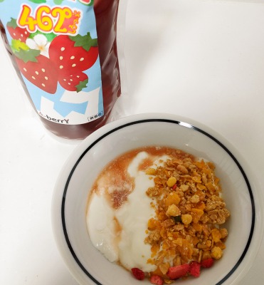 ヨーグルトソースとして使うときは、乾燥いちご入りのグラノーラを乗せると苺づくしで贅沢なヨーグルトになってオススメです?