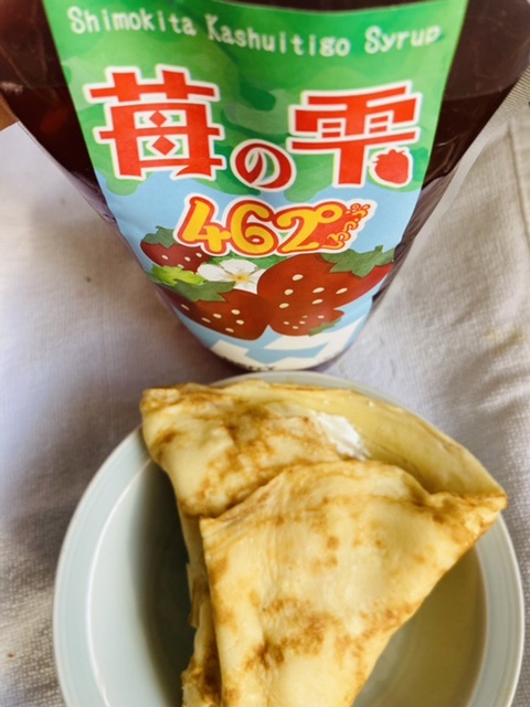 クレープはホットケーキミックスで簡単に作りました、ホットケーキミックスに水だけでクレープ液が簡単に作れます