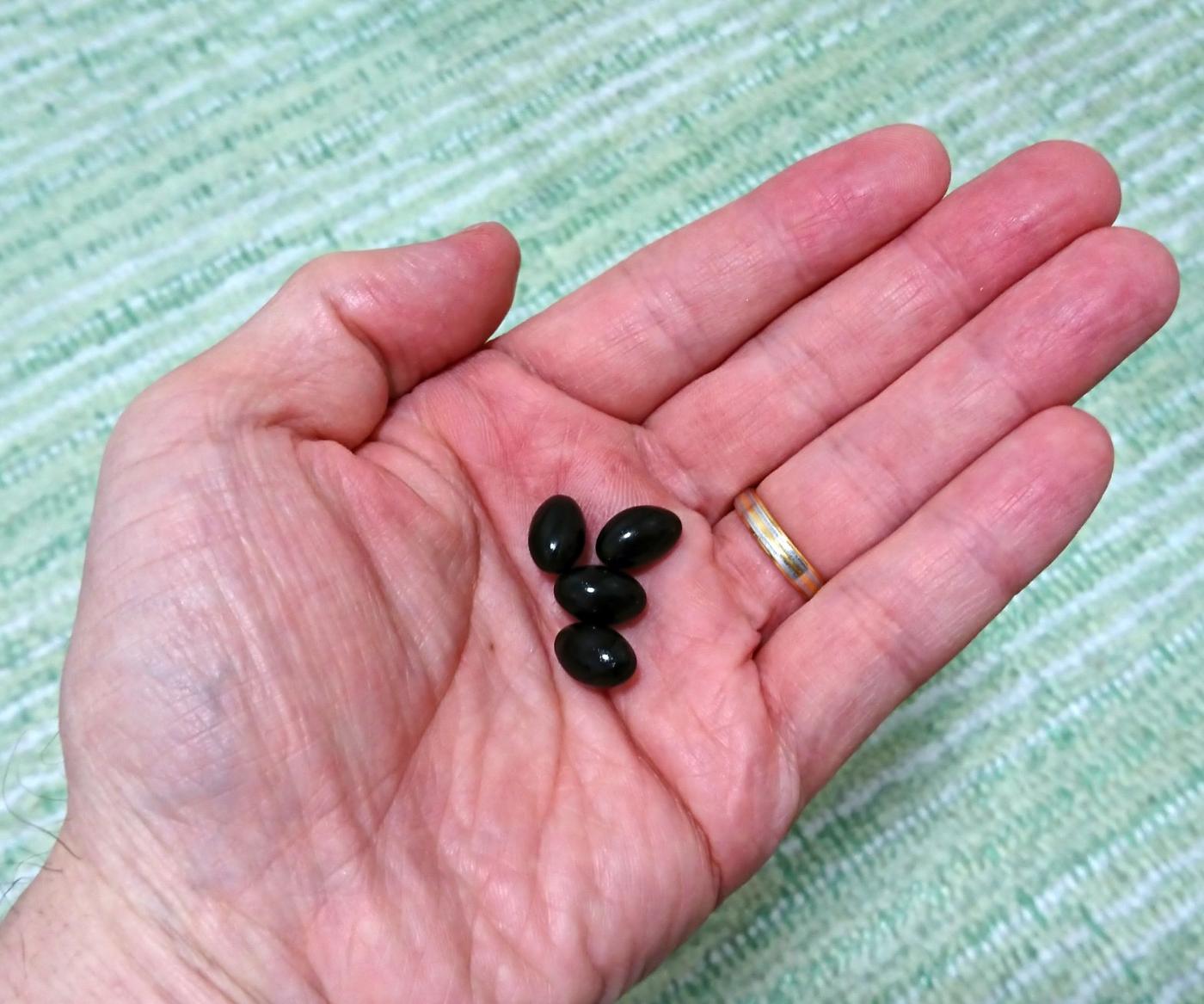 封を切ると、これまた真っ黒ーな粒粒達が。袋に鼻を突っ込むと多少臭いを感じる。例えるならー、いかにも酵素って臭い・・・。