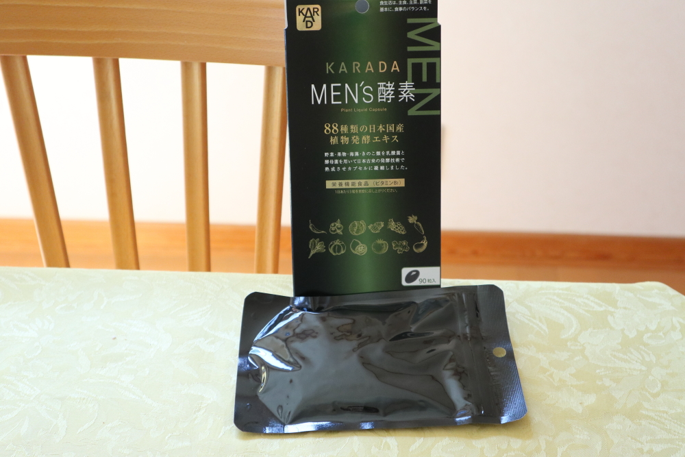 MEN’S酵素は、黒いプラスチックの袋にサプリが入っています。