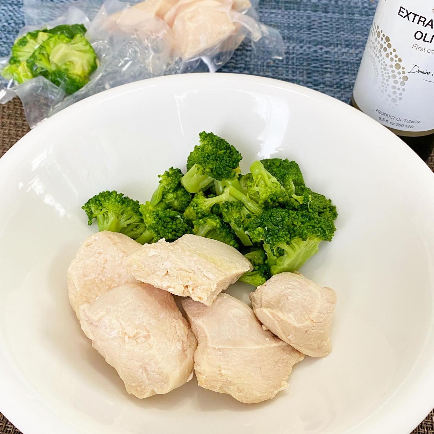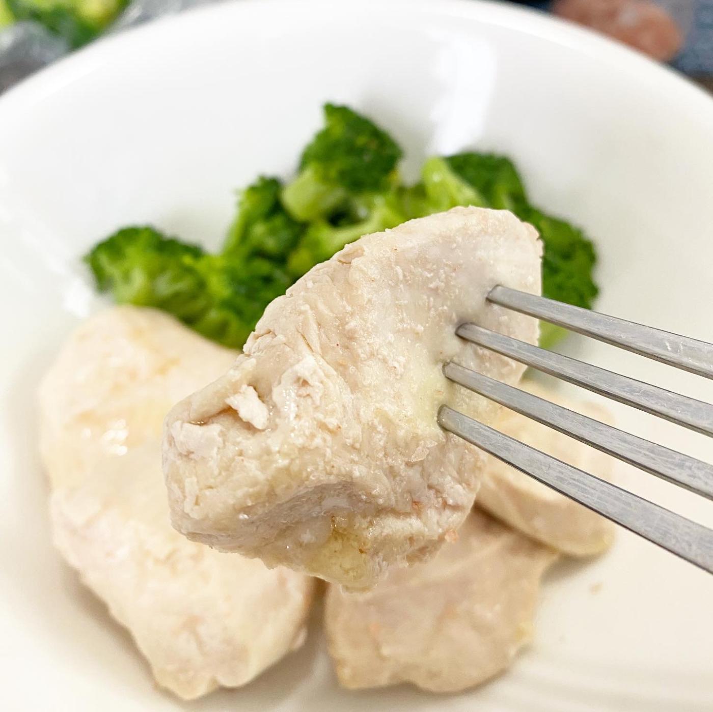 鶏むね肉とブロッコリーサラダの紹介です こちらは過熱水蒸気技術による低温調理で、柔らかくジュー...