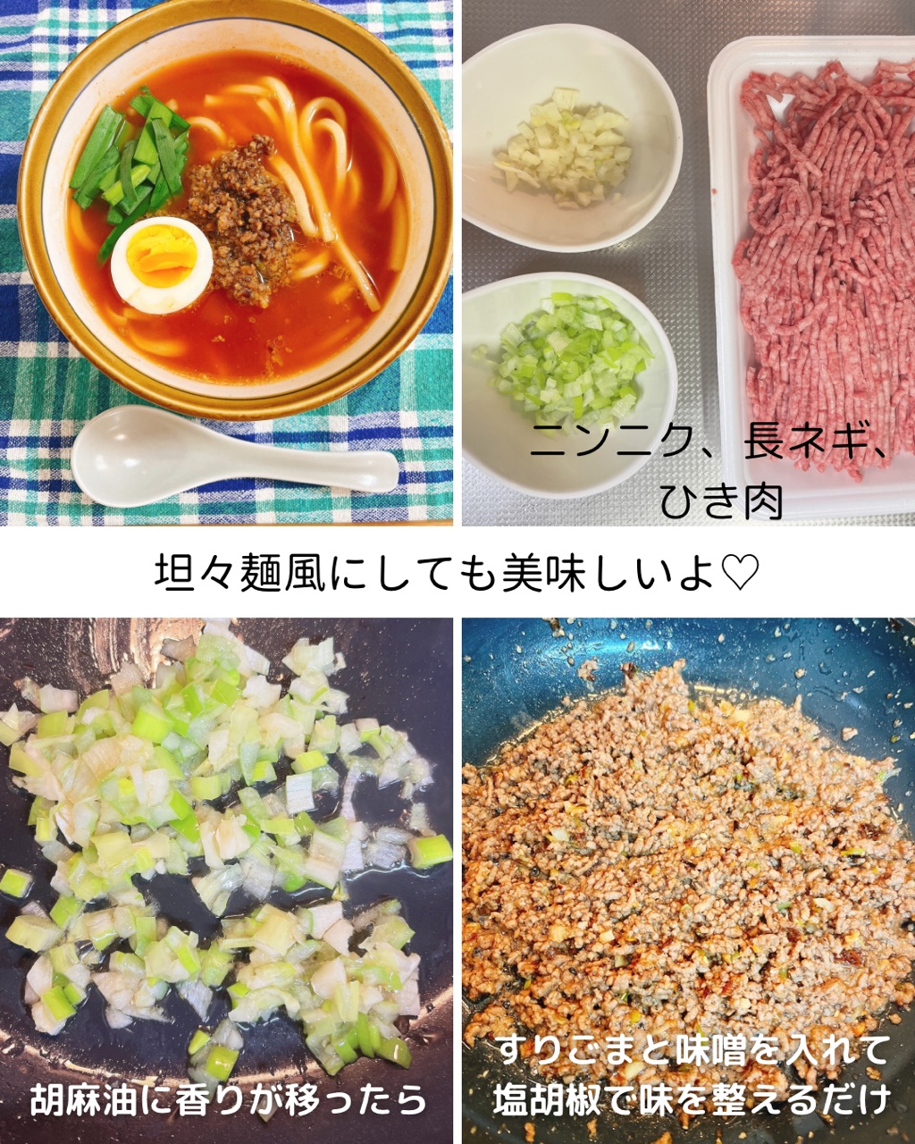 挽肉炒めて坦々麺風にしてみたけど胡麻油とも合っててすごくおいしかった✨