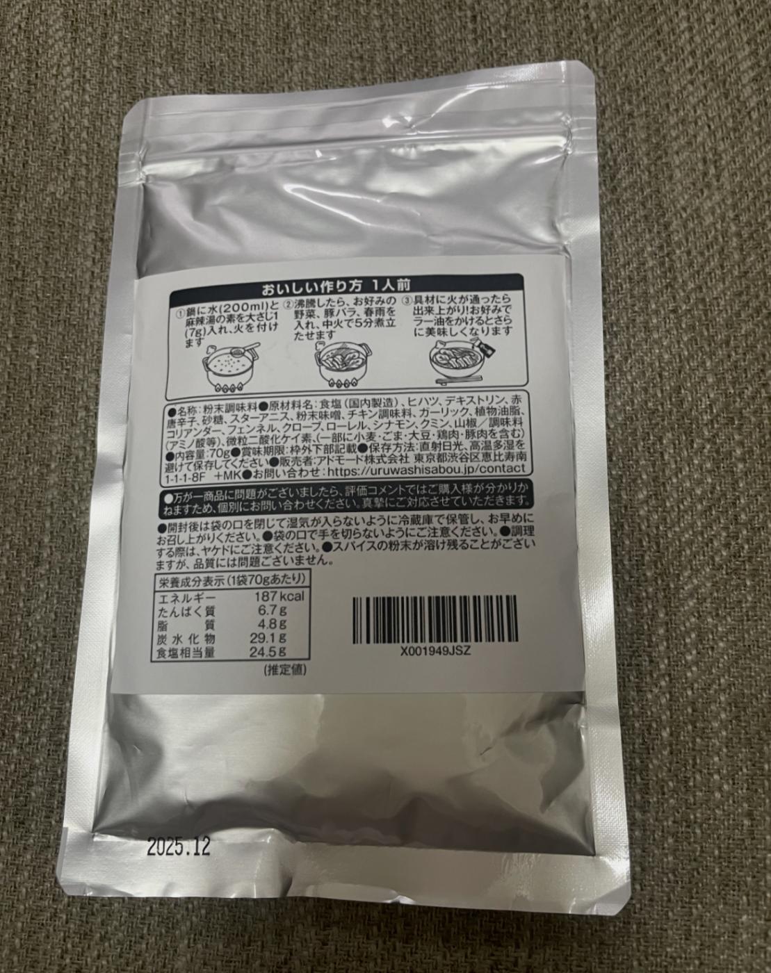 うるわし茶房「スパイス香る 旨辛 麻辣湯」