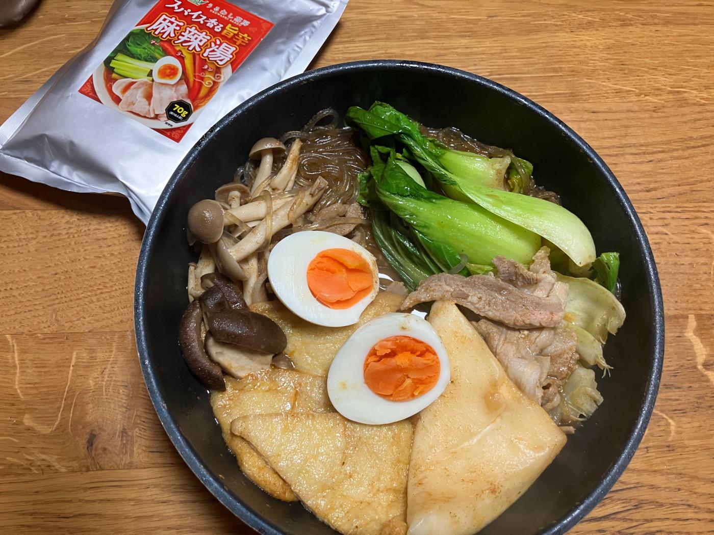 ぐつぐつ5分ほど煮込んでゆで卵をトッピングしてみたら彩りの良い麻辣湯が簡単にできました。