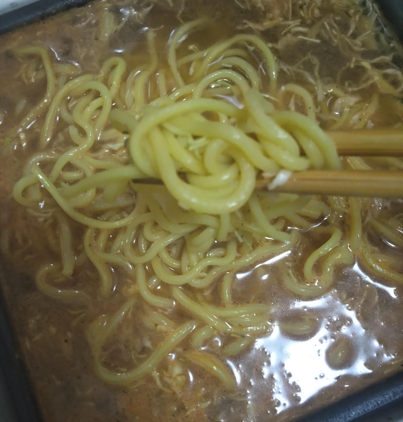 私は中華そばと野菜を一緒に入れてじっくり煮込んで食べました。