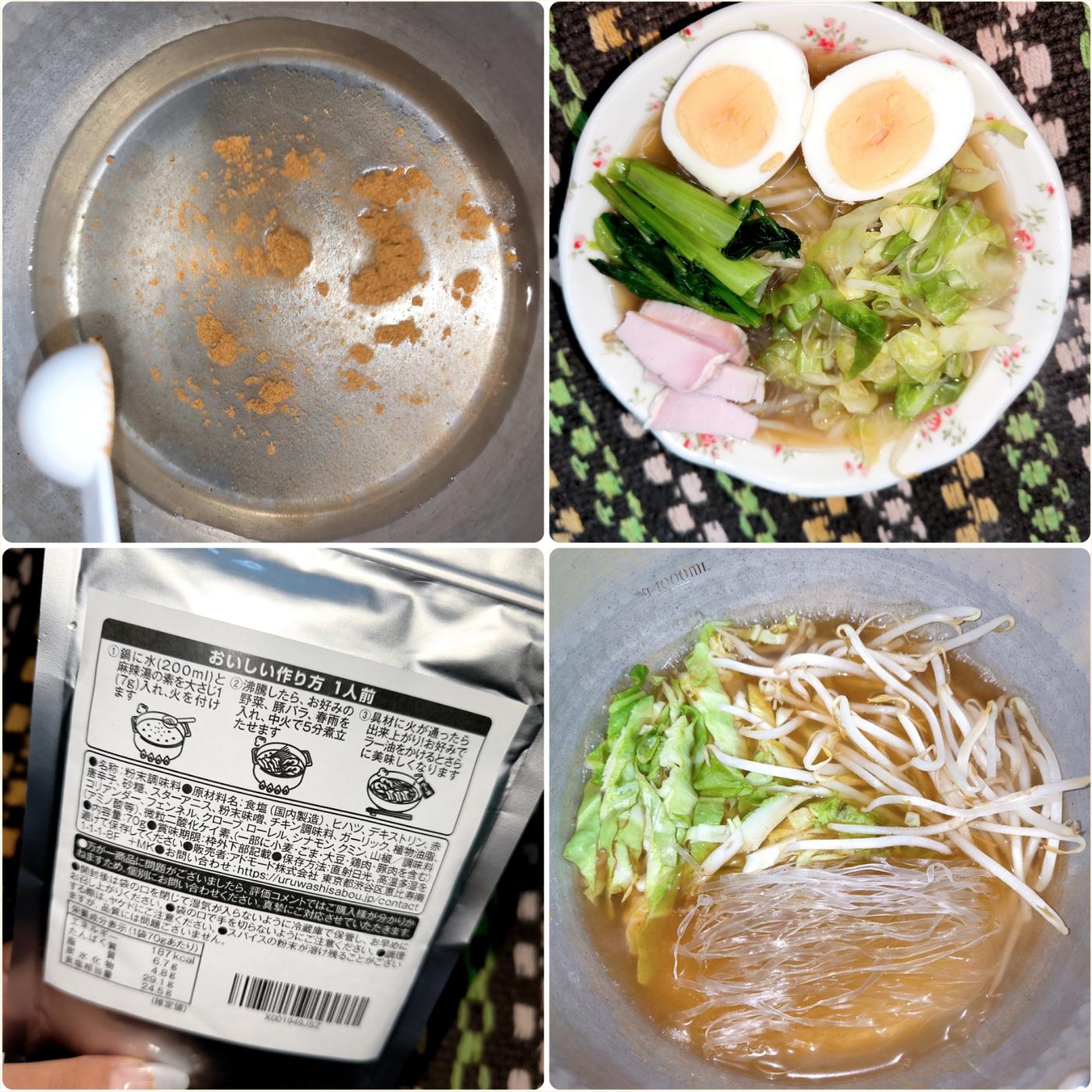 野菜とかトッピングは余りもの。朝のお弁当の残りなどで節約にも◎。
