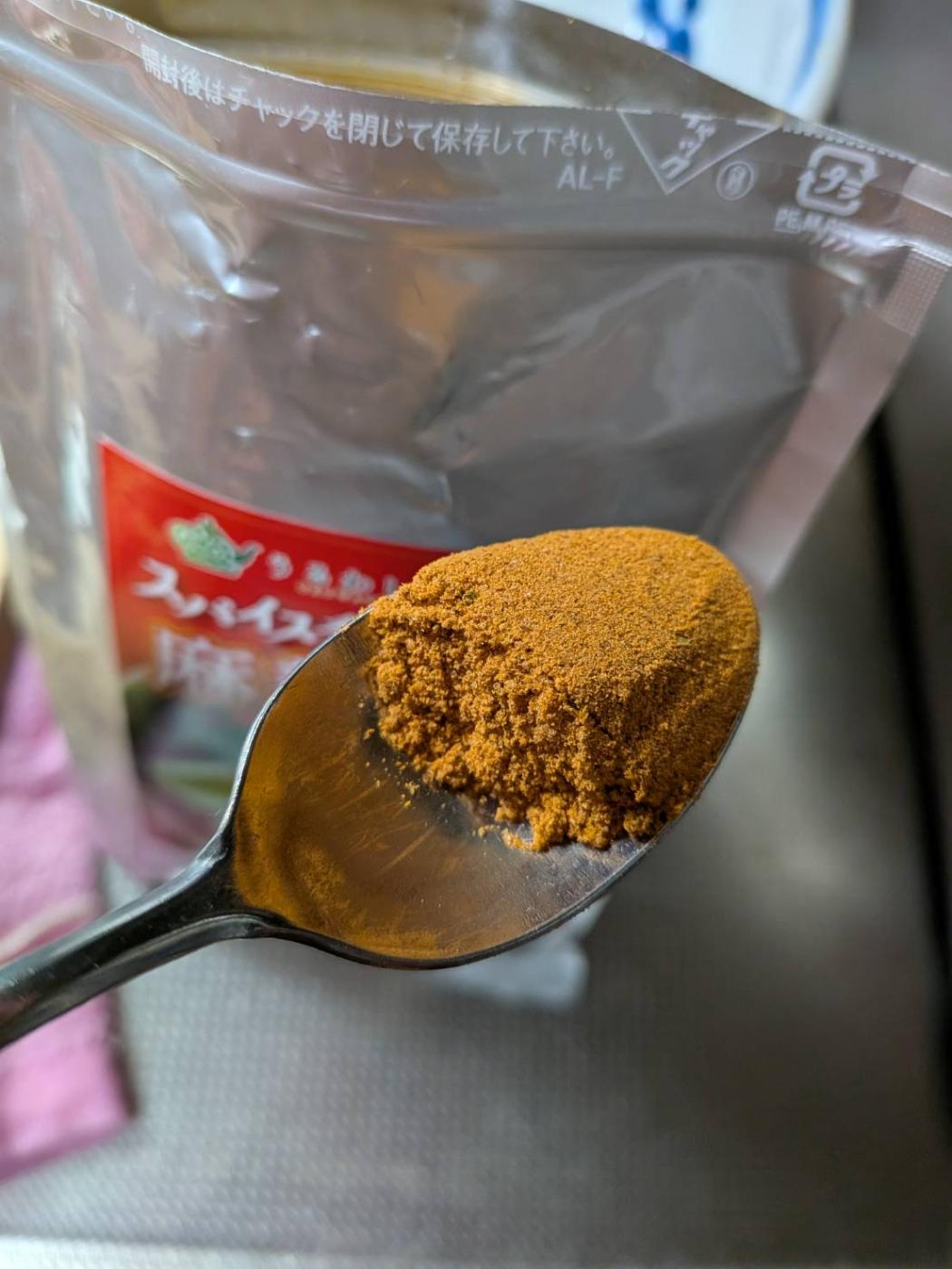 食べてみるとちょっと私には塩気が少なく感じましたが、スパイシーさはばっちり。ピリッとした辛みはあるけど、こんなにスパイシーな味わいは自分では作り出すことはできないから、便利!