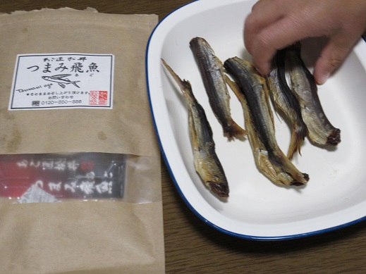 夫は、塩気が和らいで美味しいくなる、と日本酒につまみ飛魚を浸して食べていました。