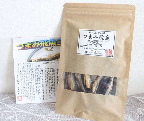 高級食材とも言えるアゴ出汁につかわれるアゴを、頭とはらわたを取り除いて、干し、みりんで味付けし、丁寧に焼き上げたおつまみ飛魚。