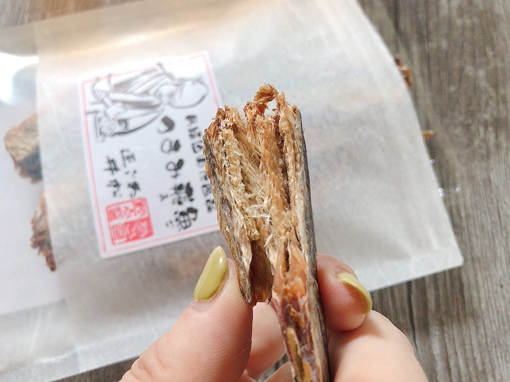 噛むと硬すぎず柔らかすぎず、いい塩梅のかみごたえで、最初甘めのお醤油の味がし、後から噛めば噛むほどあごの旨味が出てきます。