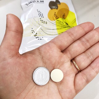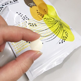グレープフルーツ味、甘さも控えめで1円玉よりも小さなサイズで食べやすいです。