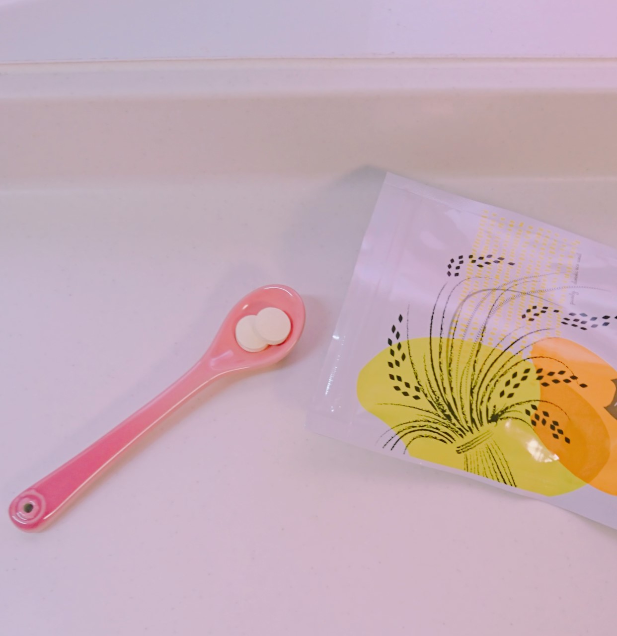 一日2粒をなめるか噛んで食べるチュアブルタイプで水なしで飲めるので、いつでもサッと摂取できるのが嬉しいサプリメントです。
