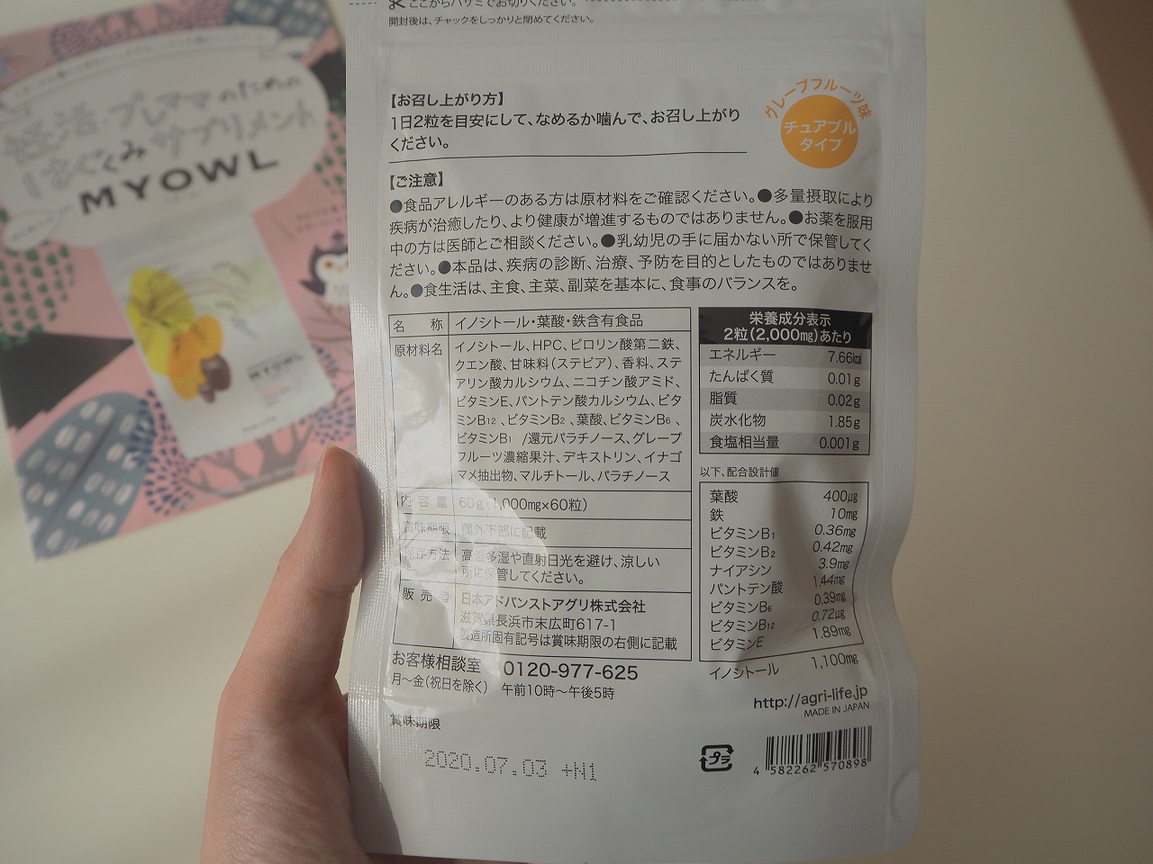 ふくろうと稲穂とお米がデザインされたパッケージです。 ミオイノシトールと葉酸と鉄分が配合されてい...