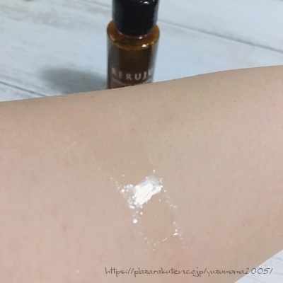 そこで体内で減っていく一方のグロースファクターを、スキンケアで補えるのがこの美容液。本品は30mlですが、まずは実感トライアルの7mlを使ってみました。トライアルサイズも、ちゃんと蓋がスポイトになっていて使いやすいです。少し白濁した美容液で無香料、無着色。鉱物油、パラベンも入っておらず肌に優しい使い心地。洗顔後何もつけてない状態で1番に使います。1回の使用量は5円玉くらい。