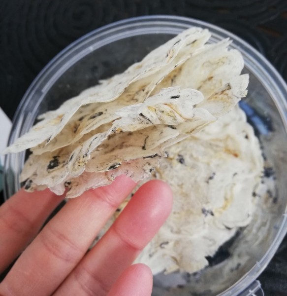 優しく持たないとパリッと割れてしまいそうなほど、とっても薄いチップスです。