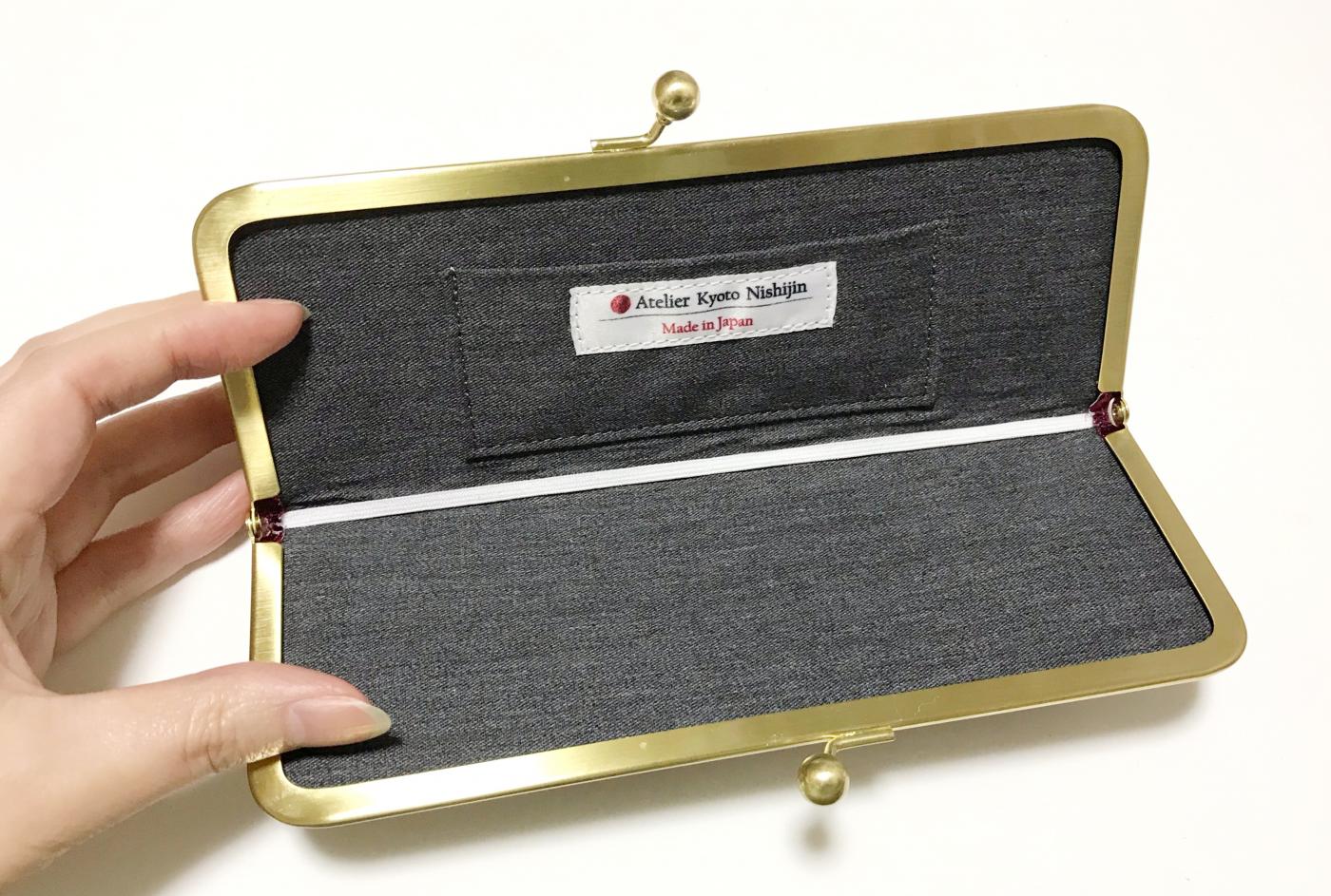 ネーミングが長いですが、そのネーミング通りオリジナルの西陣織の生地を国内で加工し、全て職人の手作業で作られた純日本製