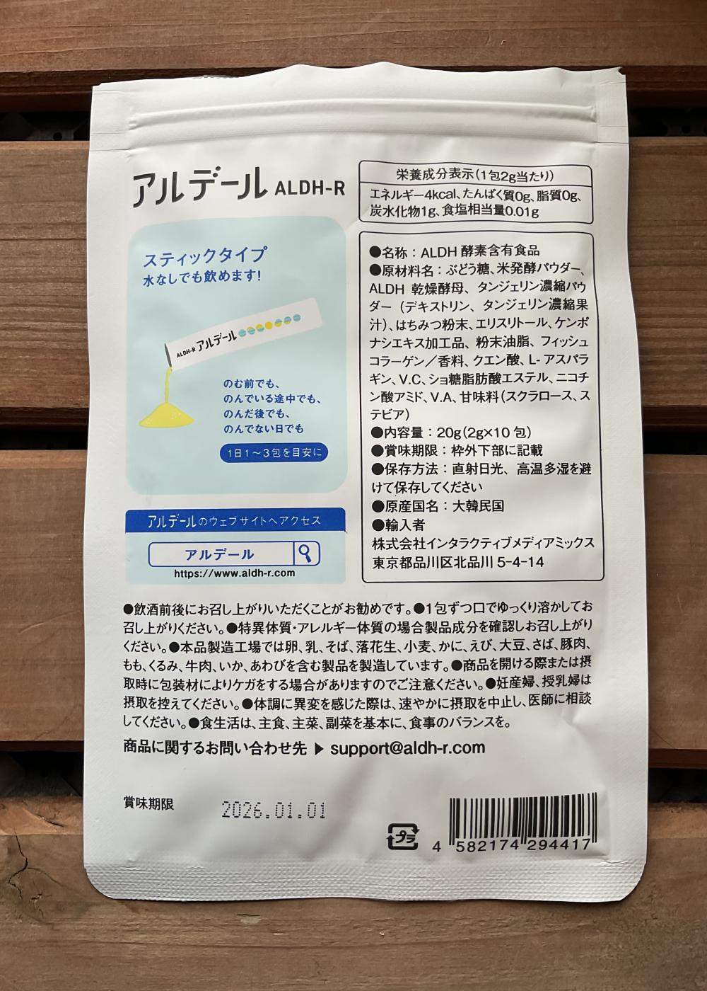 ぶどう糖、米発酵パウダー、ALDH乾燥酵母、