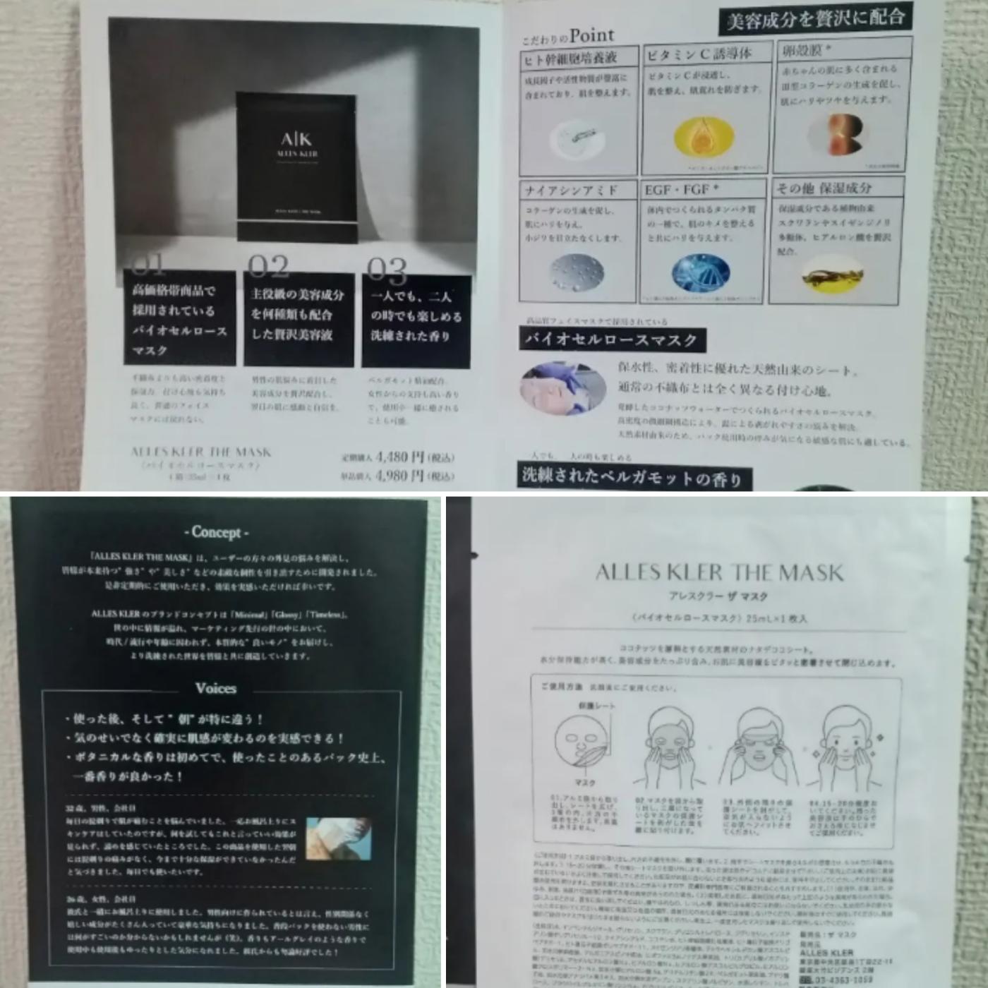 メンズフェイスパック ALLES KLER(アレスクラー)さんのバイオセルロースマスクをコエタスさんを通して ...