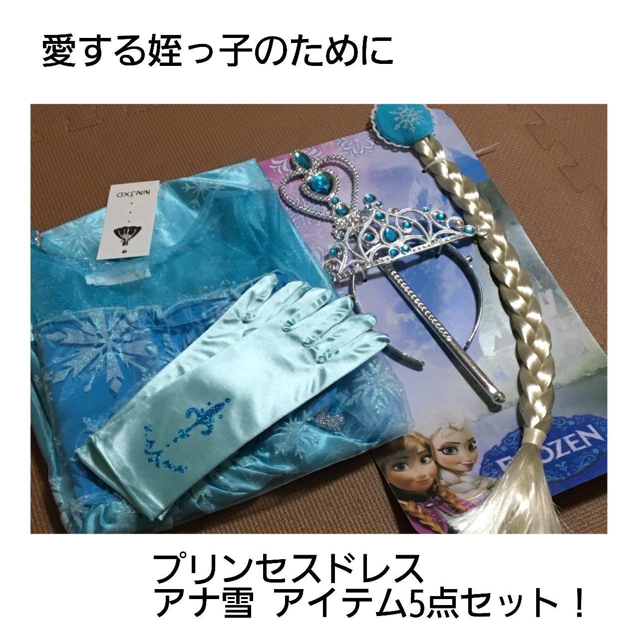 プリンセスドレス 子供用 アナ雪なりきりセット アイテム5点セット